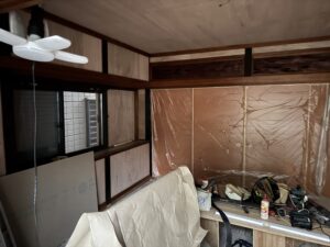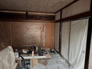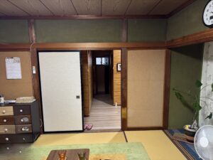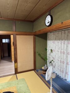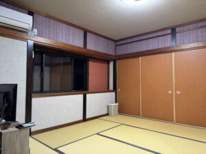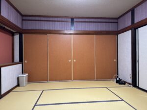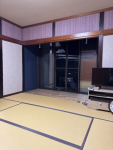 畳・襖はそのままで、縁側のフローリングの張り替えと柱の塗り替え、天井・壁をクロス仕上げにリフォームしました。